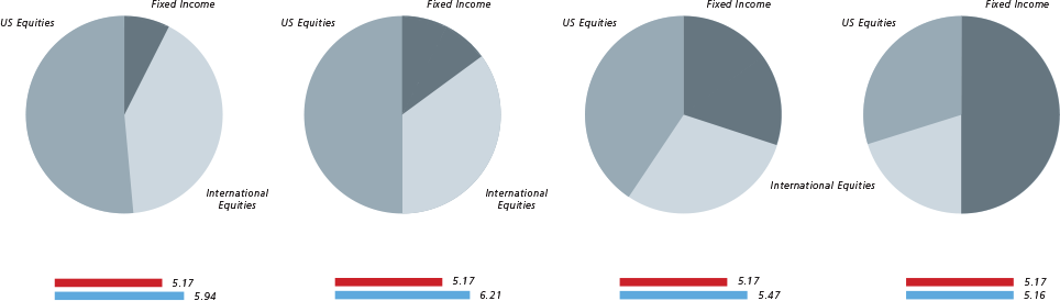 For the disciplined, long-term investor we offer four exceptionally-diversified, non-speculative portfolios with advisor fees among the lowest in the industry. Each custom-indexed VIA Four portfolio is designed to achieve sustained superior performance with reduced investment risk, and three have outperformed the Vanguard Global 60/40 benchmark over the last 5 years. Individual portfolios are weighted according to risk level, and each is composed of the following asset classes: U. S. Large, Mid Cap, and Small Companies, International Large and Small Companies, Emerging Markets, U. S. and International Real Estate Investment Trusts, and fixed income (current allocations available upon request). Generally speaking, the longer your horizon the more aggressive you can afford to be. This means investing proportionately more in equities (companies), relatively less in fixed income.